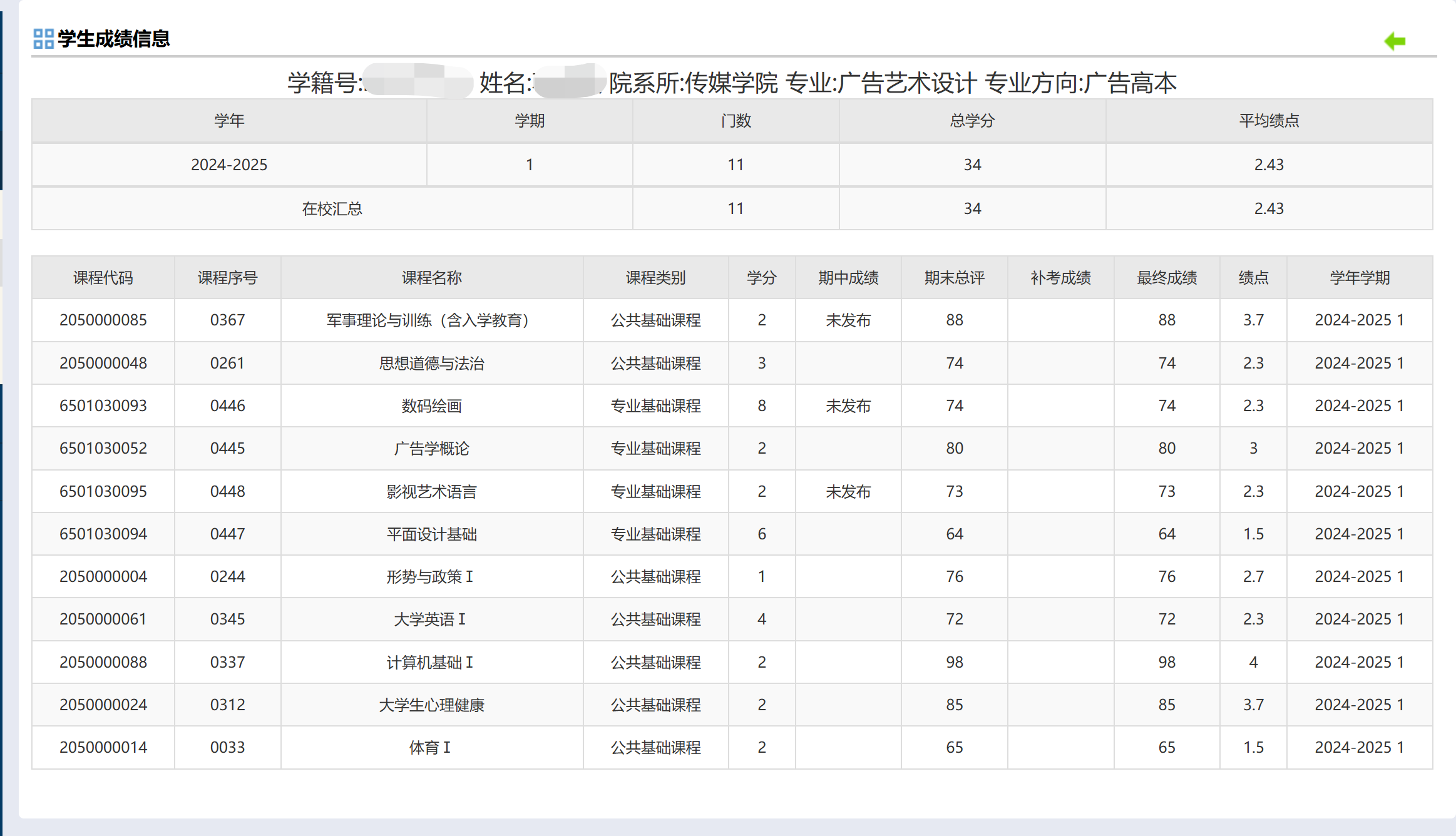 这是我这学期的学期折合分。感觉平面设计基础差了点。