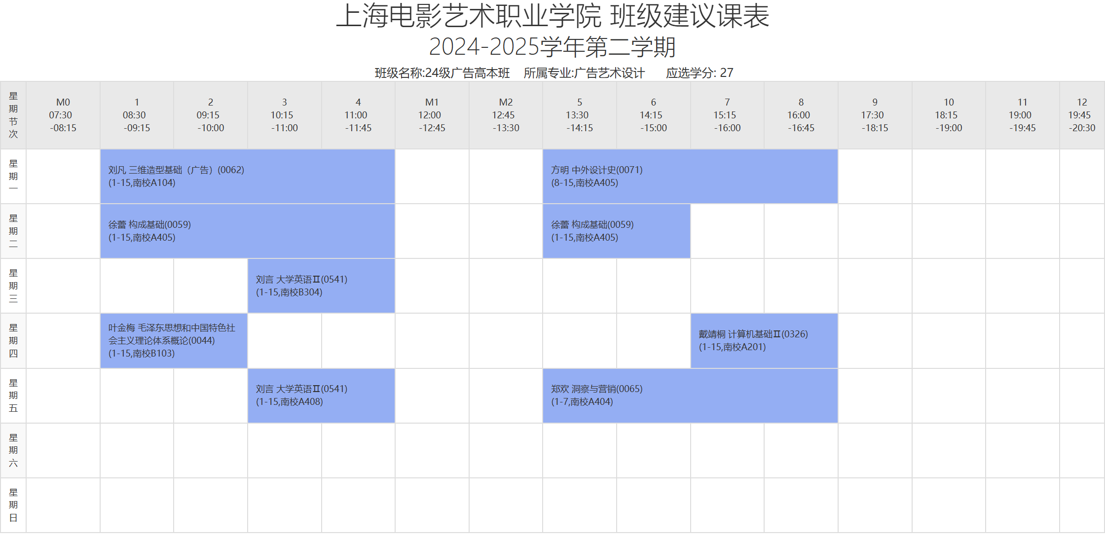 我们是22号开学报道,24号上课。这两天,天天在教务系统上看有没有出新课表,结果今天中午一看,出了。