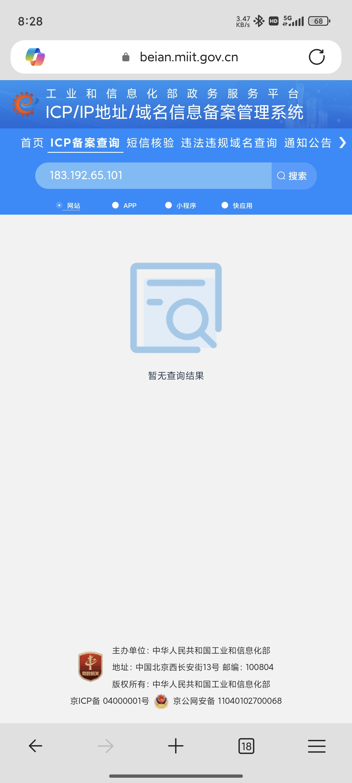 也就是说,183.192.65.101 的页面没有备案,使用了其它企业的备案信息。