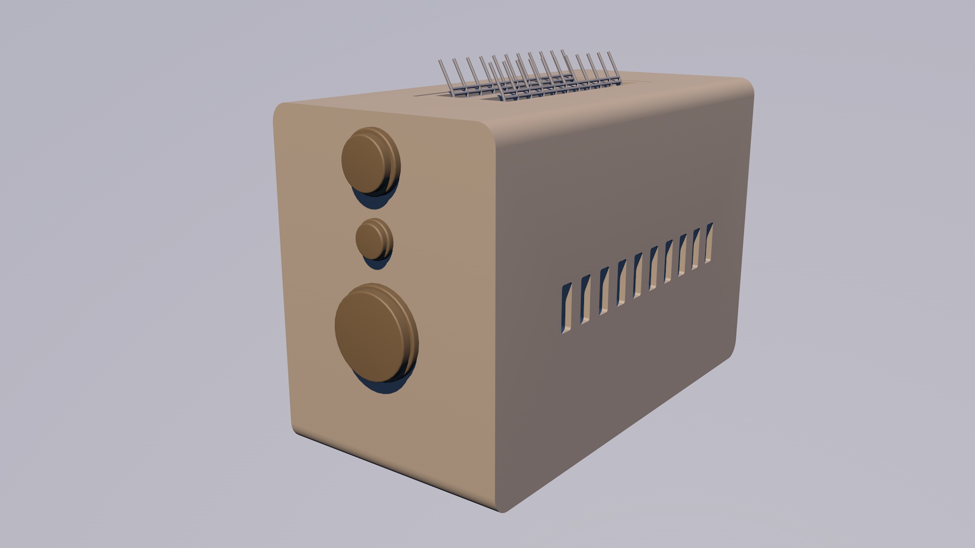 本周一,我们班搞了一次3D建模的考试。最终,这个考试还是变成了“练习” - 实在有太多人不会做了。我50分钟就做完了。题目是给定顶视图、右视图和正视图,要做成一个面包机。这是我做的: